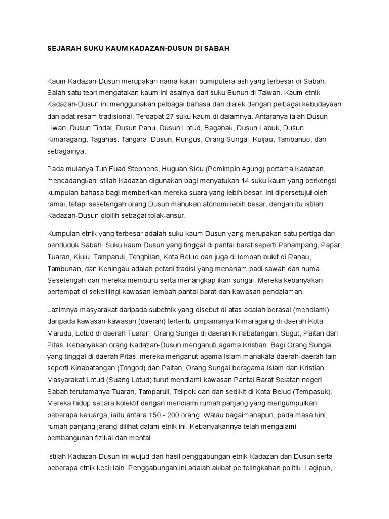 Suku Kaum Terbesar Sabah / Sejarah Suku Kaum Dusun Pdf